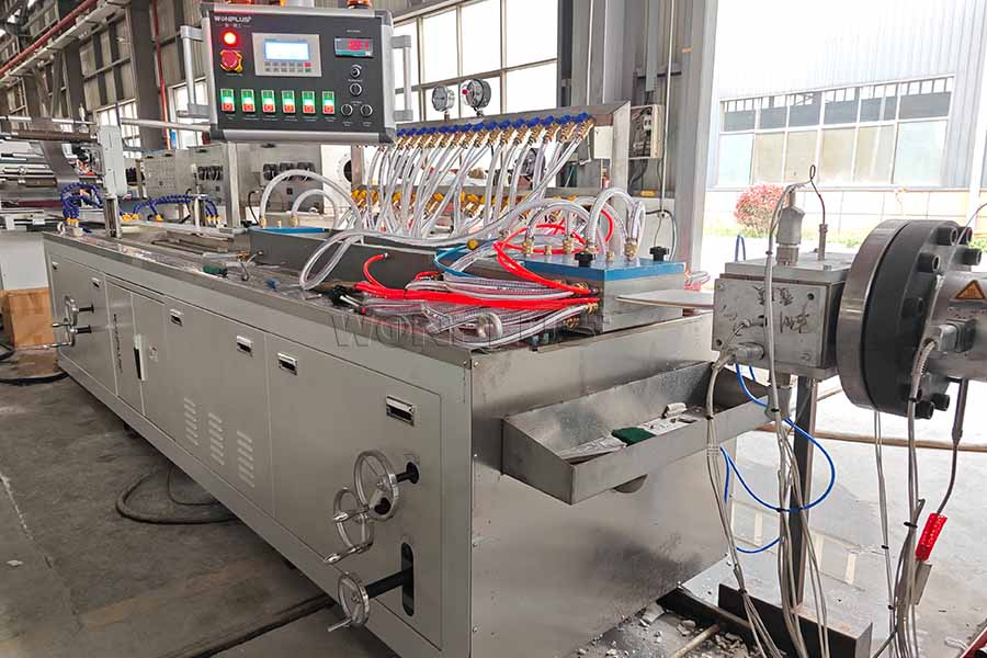 Он Линия по производству ПВХ-потолков Оборудование включает в себя конический двухшнековый экструдер, а также полный комплект оборудования для последующей обработки, в том числе форму для ПВХ-панелей для потолка, охлаждающий резервуар, ламинатор, тянущее устройство и систему резки.